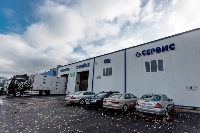 Здесь к услугам водителей уютный кафе-бар, бесплатный WI-FI, душевые, а также мойка и химчистка большегрузных автомашин.